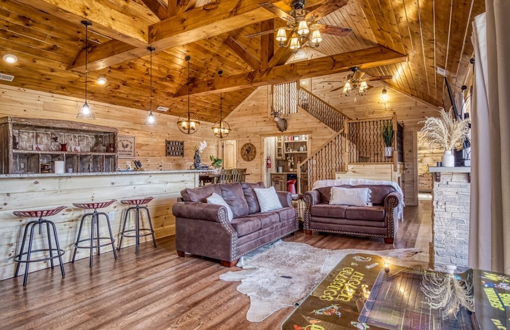 Amazing Views is a luxurious three-bedroom, three-bathroom cabin nestled in the heart of Gatlinburg, offering an unforgettable Smoky Mountains vacation experience. Newly renovated and beautifully redecorated, this spacious cabin blends modern elegance with cozy comfort, making it the perfect retreat for families or groups. Each room is designed with high-end finishes and offers stunning mountain views, ensuring a relaxing stay. Located just minutes from the Ober Mountain ski resort, this cabin provides easy access to year-round outdoor adventures, including skiing and hiking, as well as downtown Gatlinburg’s shops, attractions, and restaurants. Whether you're seeking relaxation or excitement, Amazing Views offers the ideal setting for your Smoky Mountains getaway.
