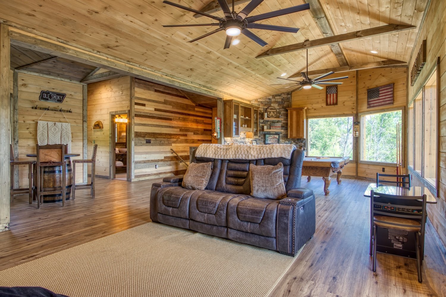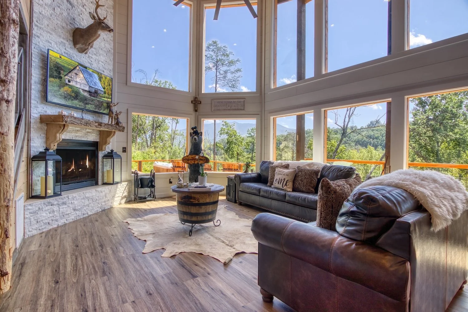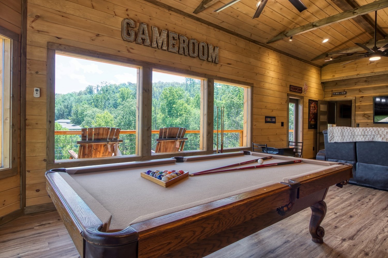 In addition to these beautiful views we offer luxurious amenities including high speed internet cabin laundry, game room, pool table, cable, satellite, theater Room, fireplace, jacuzzi and a very nice Gameroom for all to relax and enjoy.