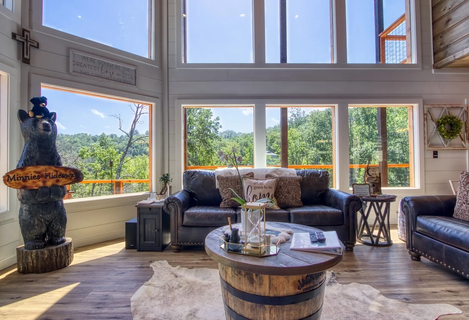 Minnies Hideaway is a Brand new 4 bedroom, 2 full bath and 2 1/2 bath luxury cabin with a modern twist designed for families who wish to relax and enjoy what the Smokey Mountains have to offer we also offers fantastic scenic views to enjoy throughout your stay.